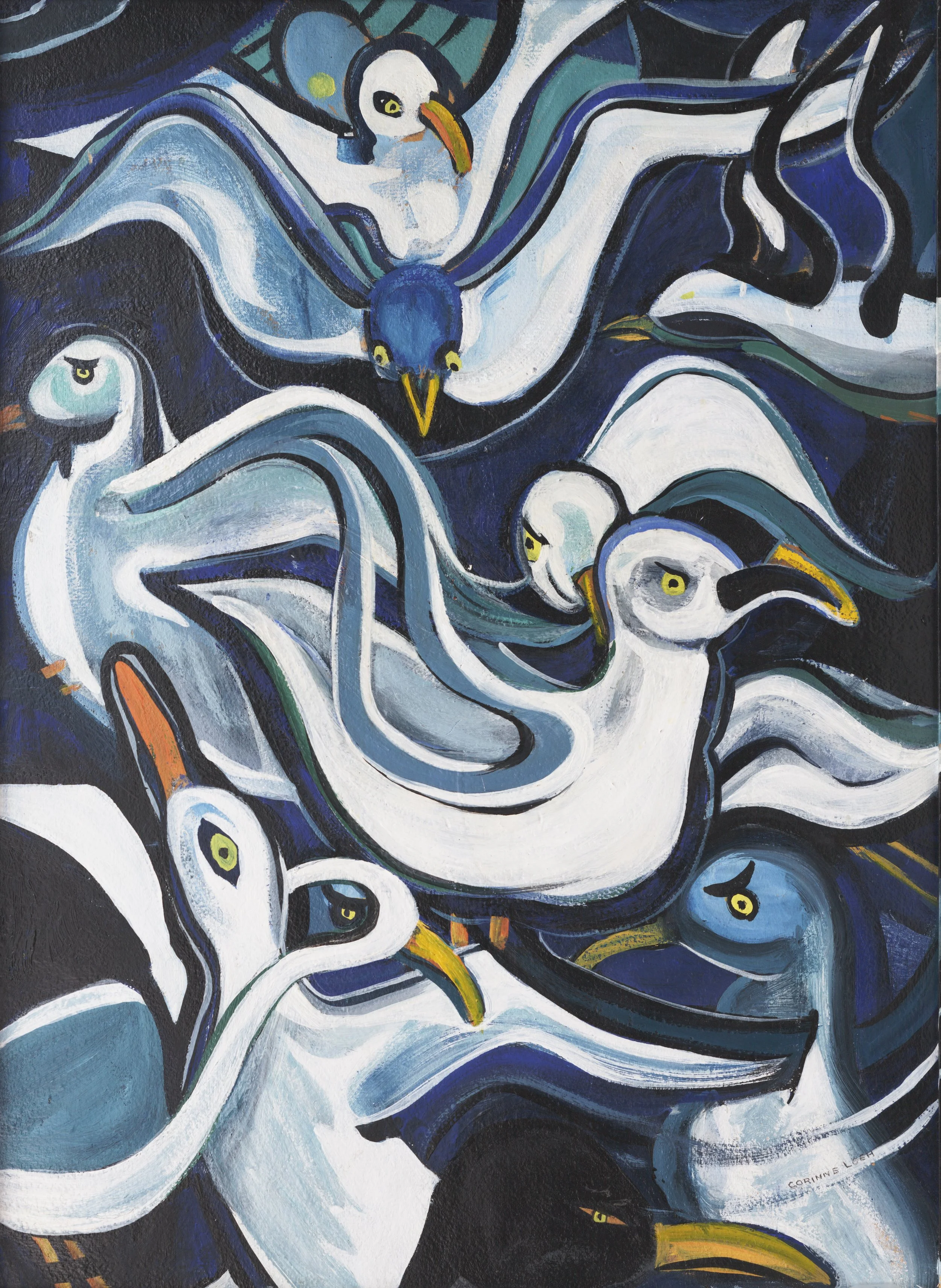 While painting in Rhode Island, Corinne Loeh could not ignore the graceful seagulls happily flitting through the waves. They seemed to know she appreciated their beauty as they strutted nearby.
